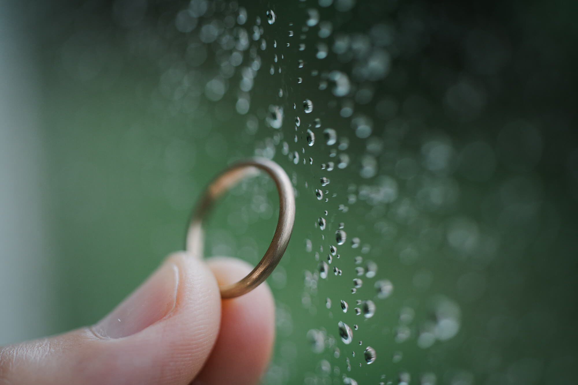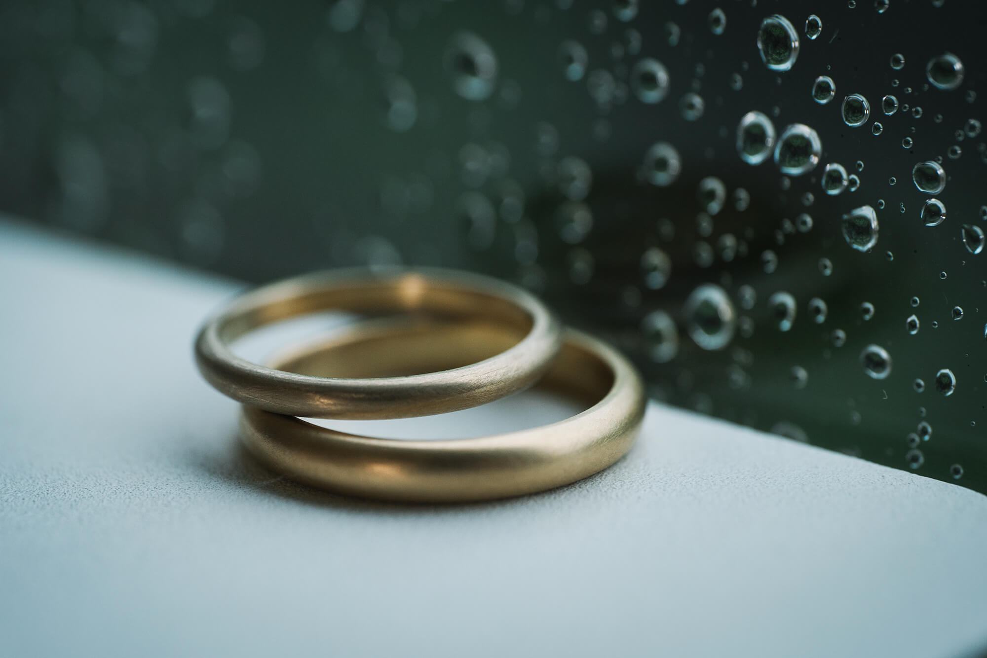 ふたつのプラチナリングが、春の淡い色彩の中で、ひとつのひかりを纏っていました。