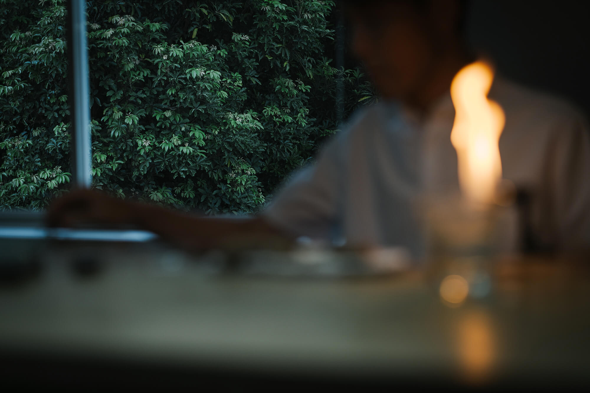 夕暮れが訪れ、アトリエは深い緑に包まれている。