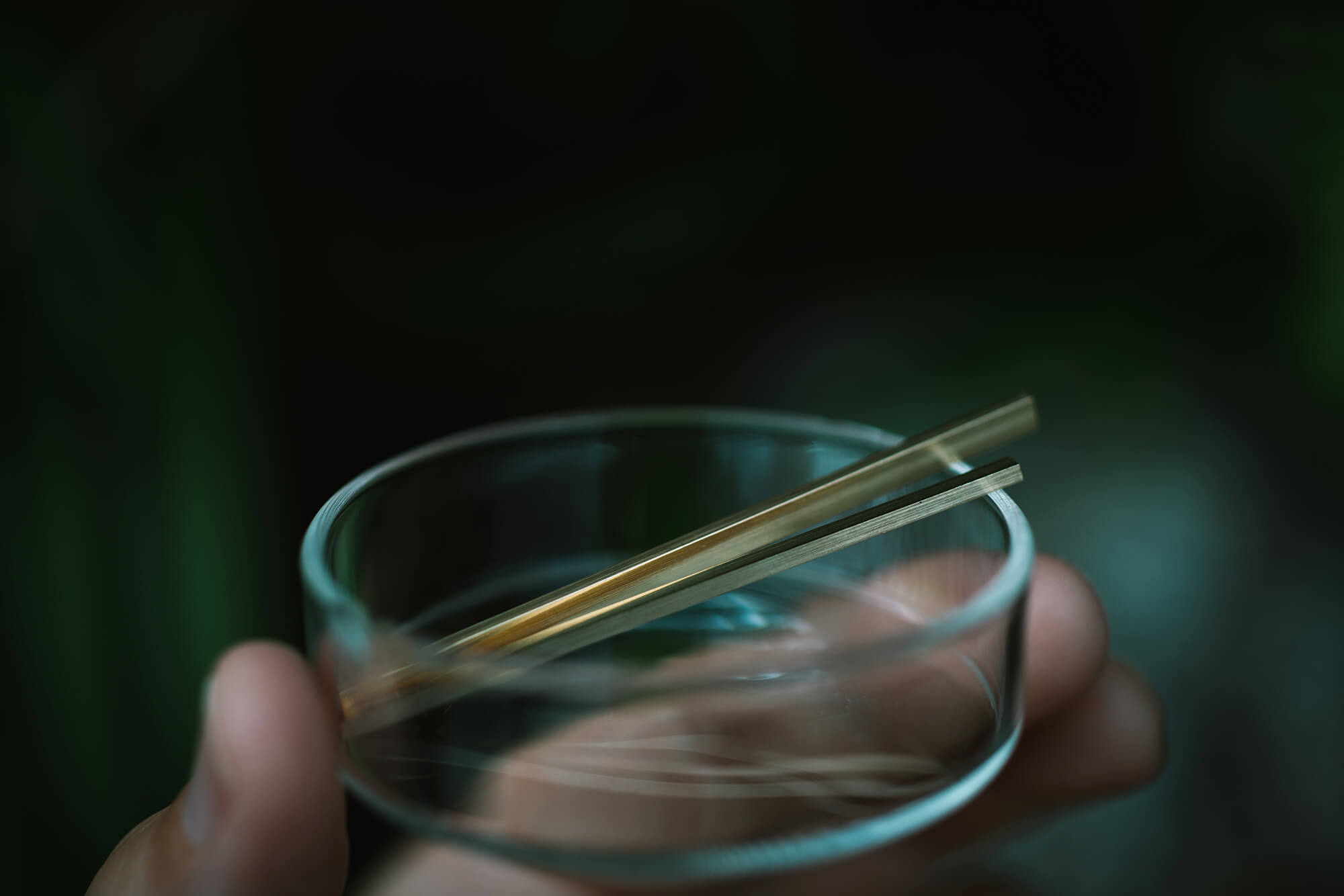 すぐにゴールドをグラスの水へと落とすと、ジュっと歯切れの良い音を立てた。