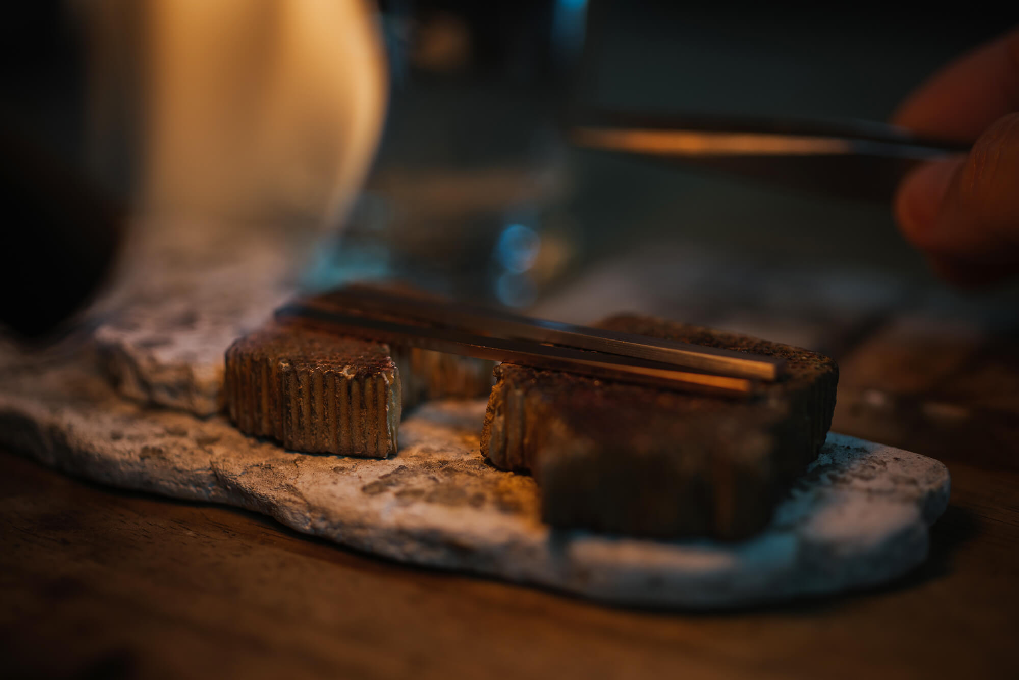 After soldering the two ends, the platinum and pink gold had unmistakably become rings.