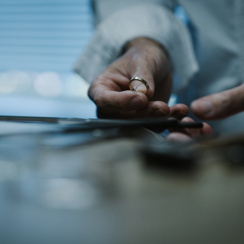 彼のリングを整え終えると、それをそばに置いて眺めながら、彼女のリングをゆっくりと磨き上げた。
