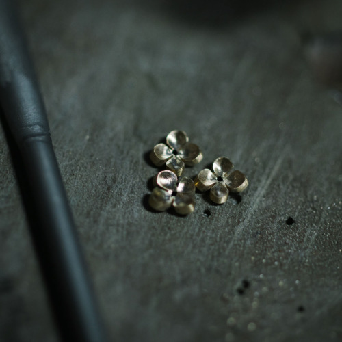 リングと花を合わせたあとに、小さな金粒をいくつか作り、
