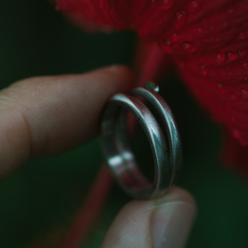 リングの表面には、ぐるりと巡る流線を削り出し、そのエッジを際立たせるように仕立てました。
