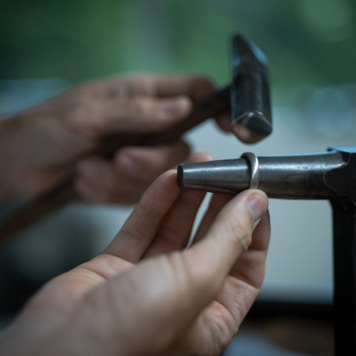 I successfully finished hammering the platinum ring, and shaped the pink gold into the same round-square form.
