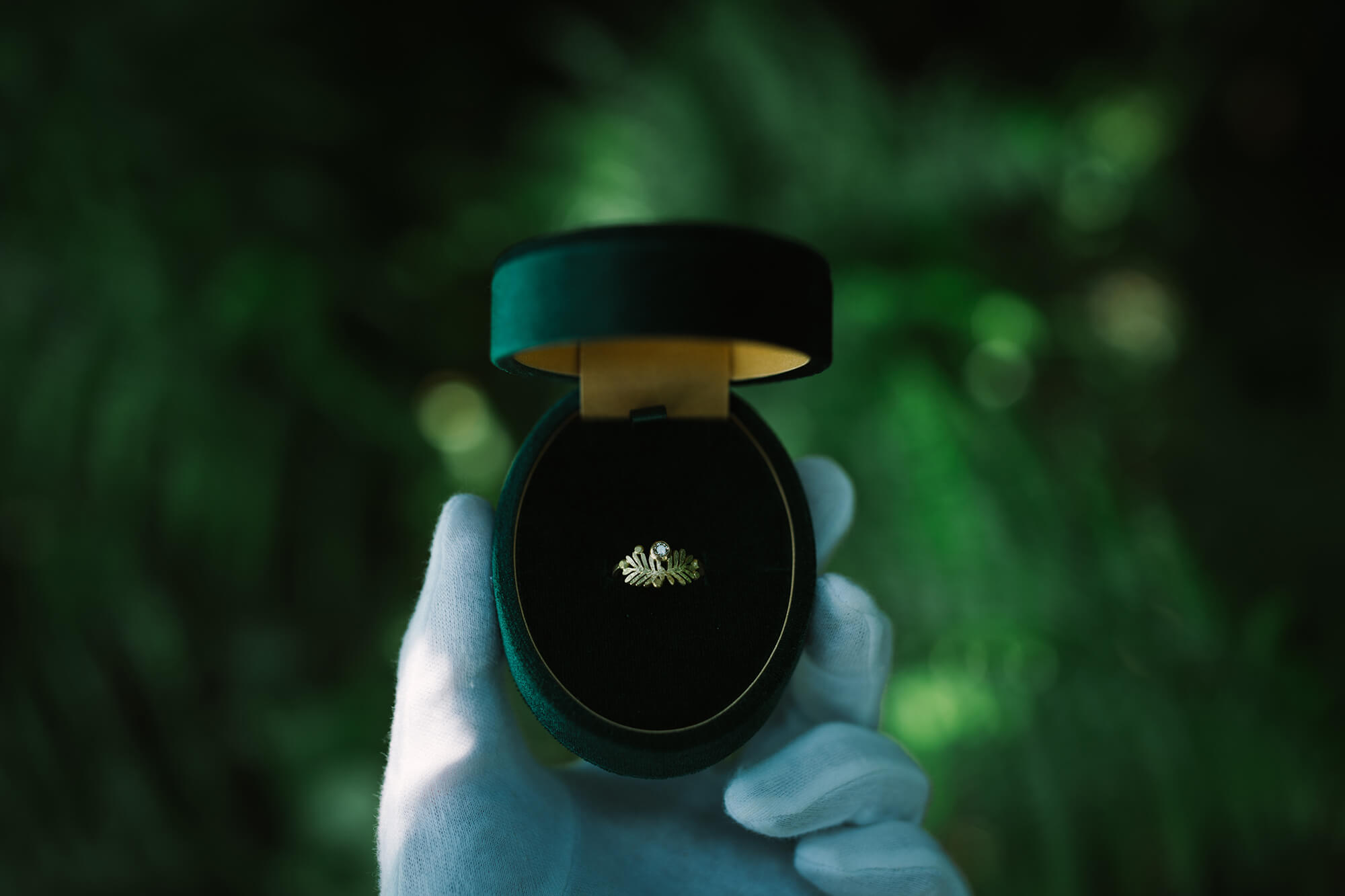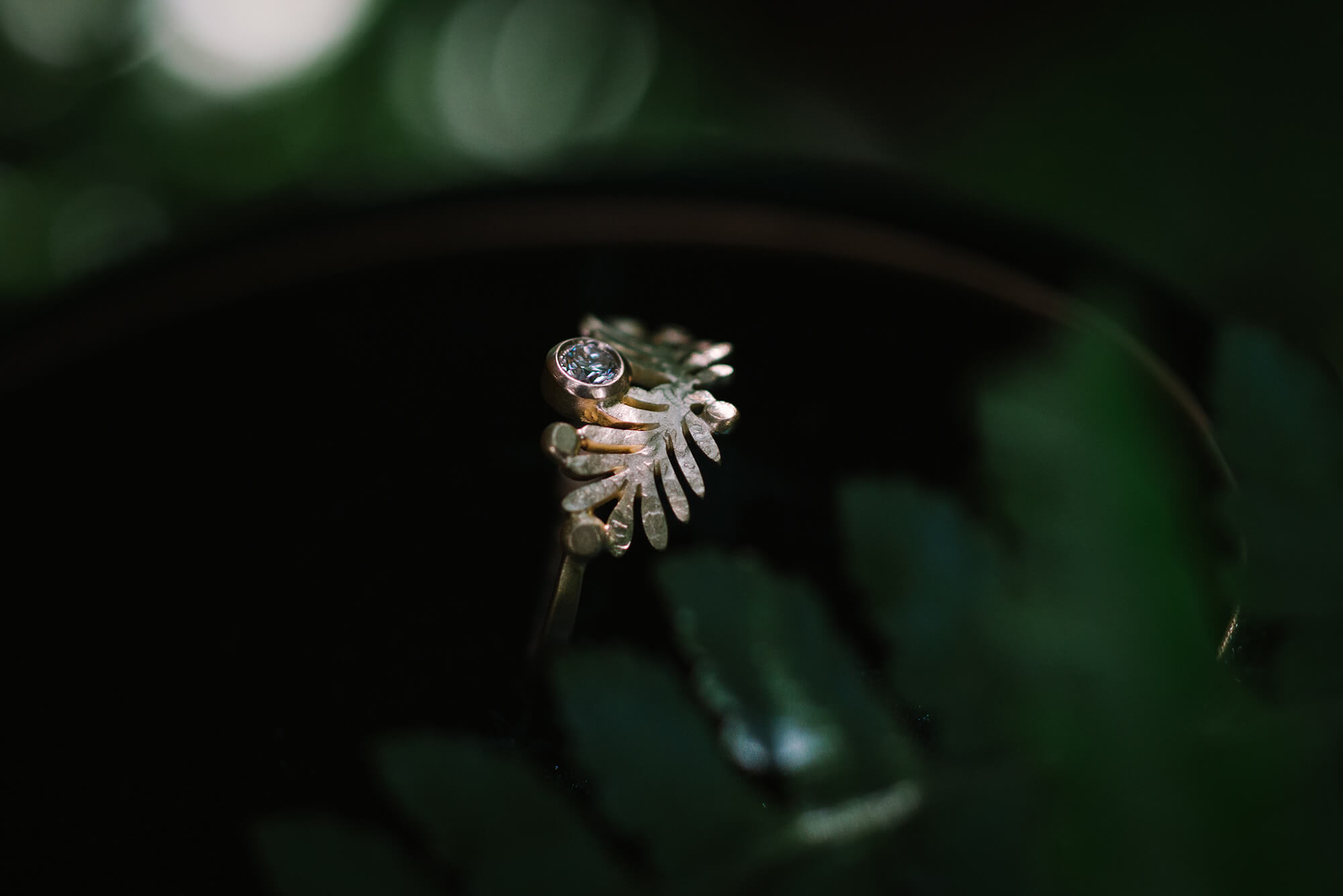 彼女がシダの若葉を、リングのように指に添えていて、それがわたしのつくるジュエリーによく似ていたのです。