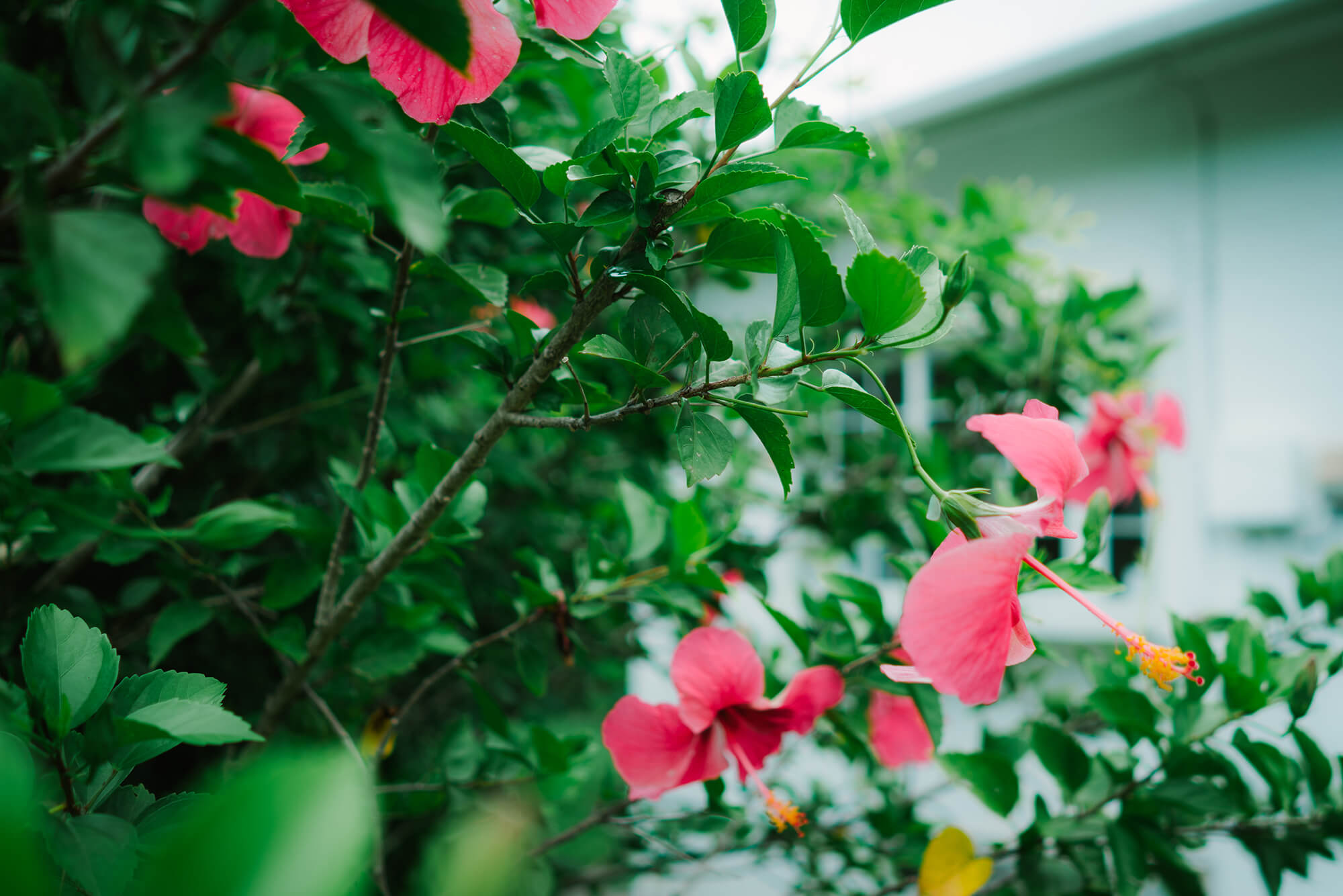 アトリエの庭先ではハイビスカスがいっぱいです。