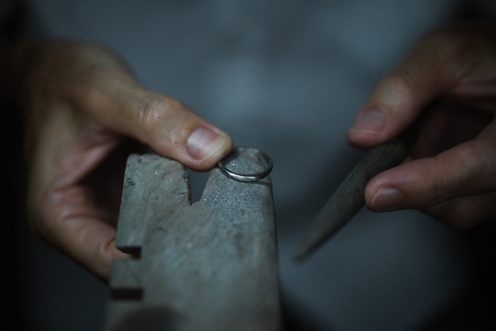作業机に向かい、プラチナリングを手にしていると、金属に流れる時間を、ふと感じることがある。