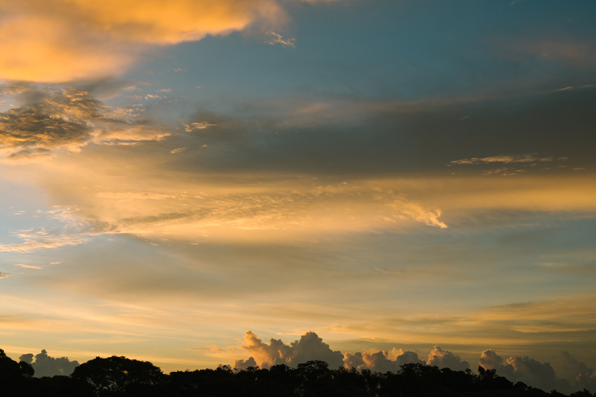 早朝の散歩道で、オレンジ色に染まる朝焼けを眺めた時を境にして、島は強い風雨に包まれた。