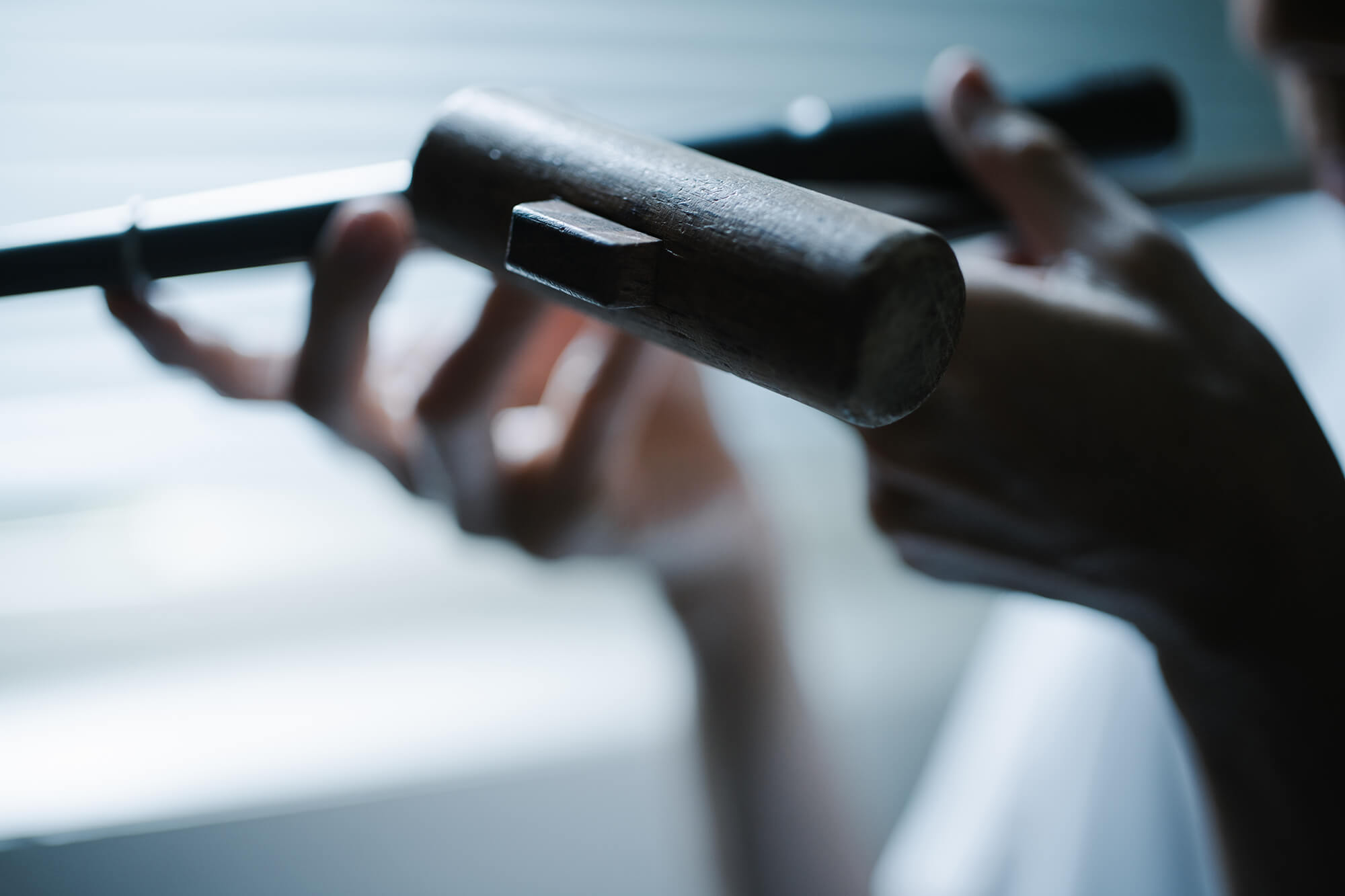 やがて、リング全体に柔らかな曲線が生まれたところで、芯金に通し、コンコンと木槌で叩きながら内側の円形を整えていく。