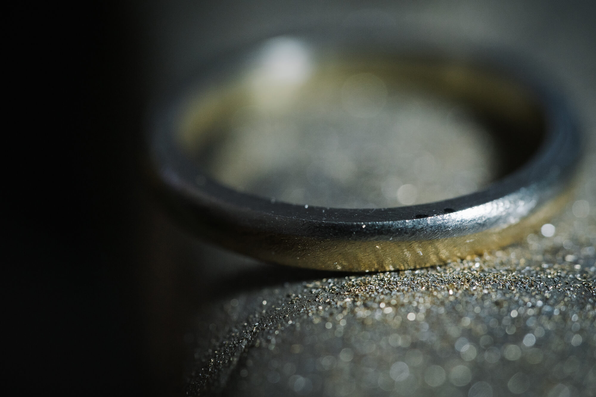 作業台の上では、削り出されたプラチナとイエローゴールドのかけらが混ざり合い、デスクライトの光を受けてキラキラと輝いていた。