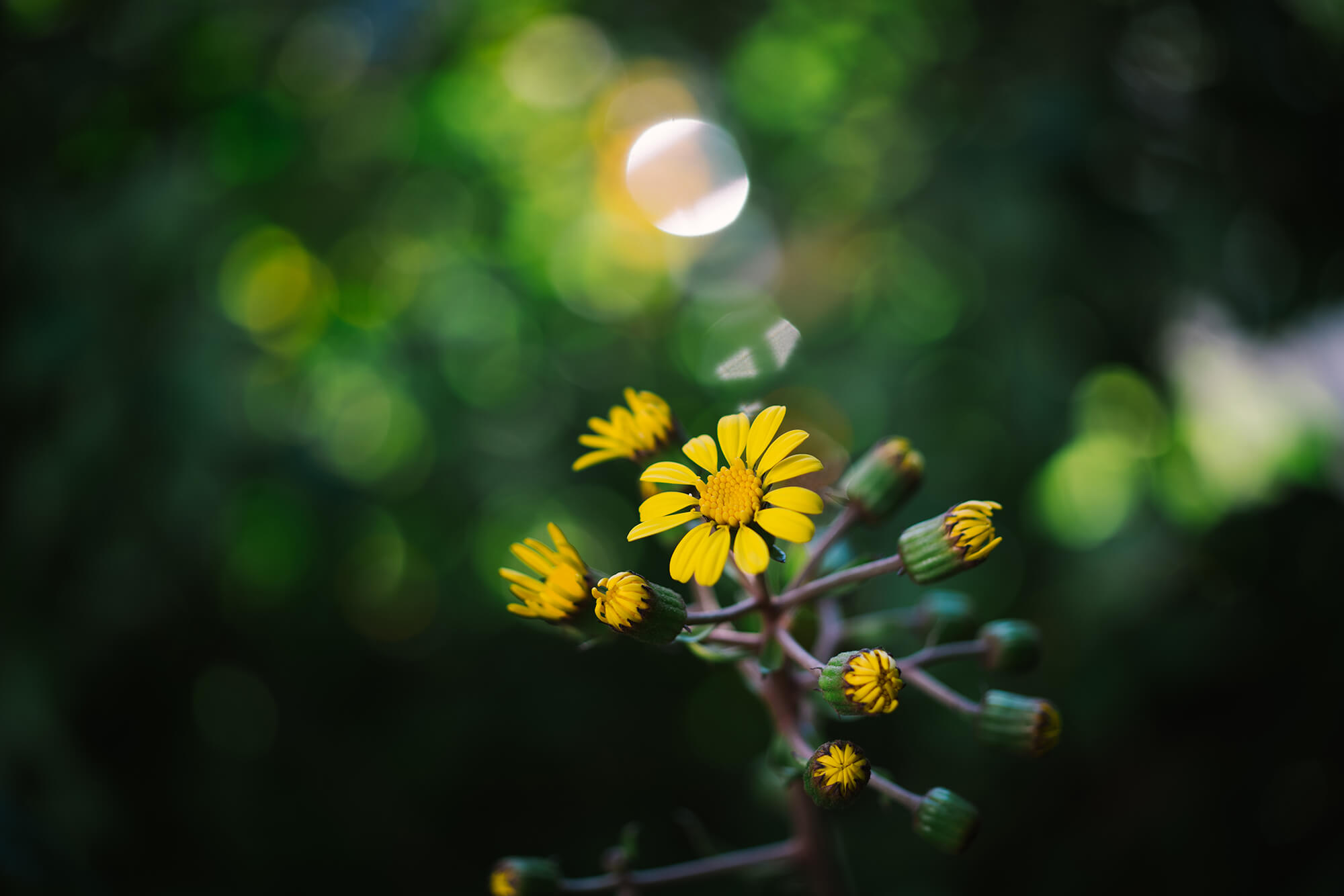 ある日突然、にょきっと蕾を抱いた茎を伸ばし、その蕾を膨らませながら、少しずつ黄色い花びらを開かせてゆく。