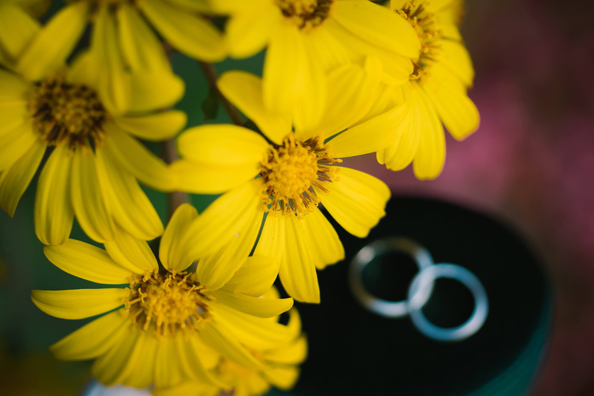 ツワブキの花のきらめきと、親しげに響き合うプラチナリング。
