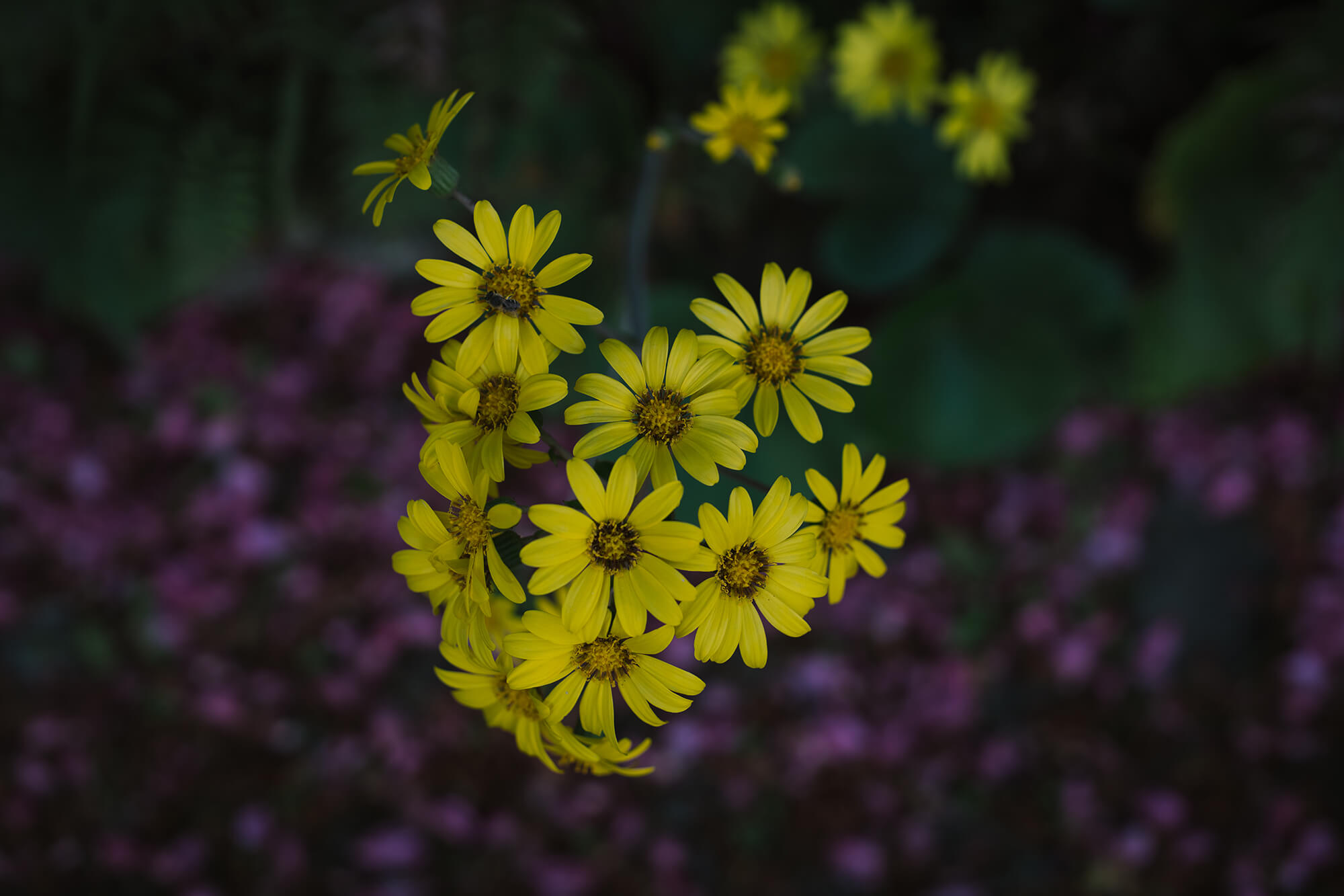 庭先では、山茶花とツワブキが色鮮やかな明かりを灯すようにして、ぽこぽこと花を開かせていました。
