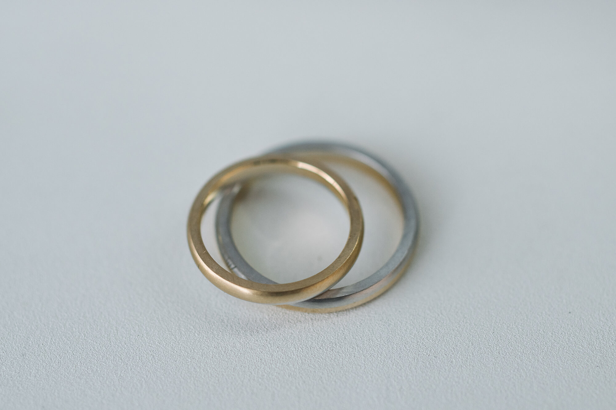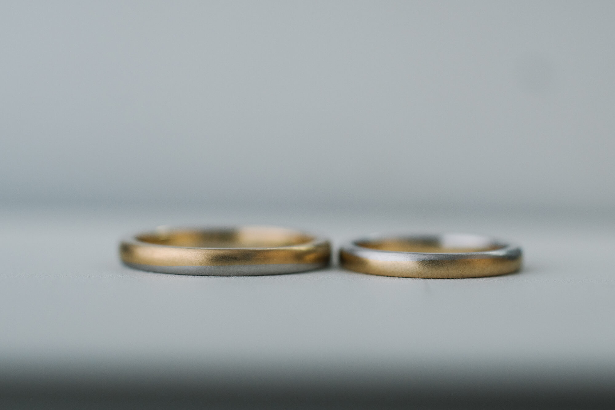 2.5mm and 2.5mm round-square in 18k yellow gold and platinum #屋久島でつくる結婚指輪