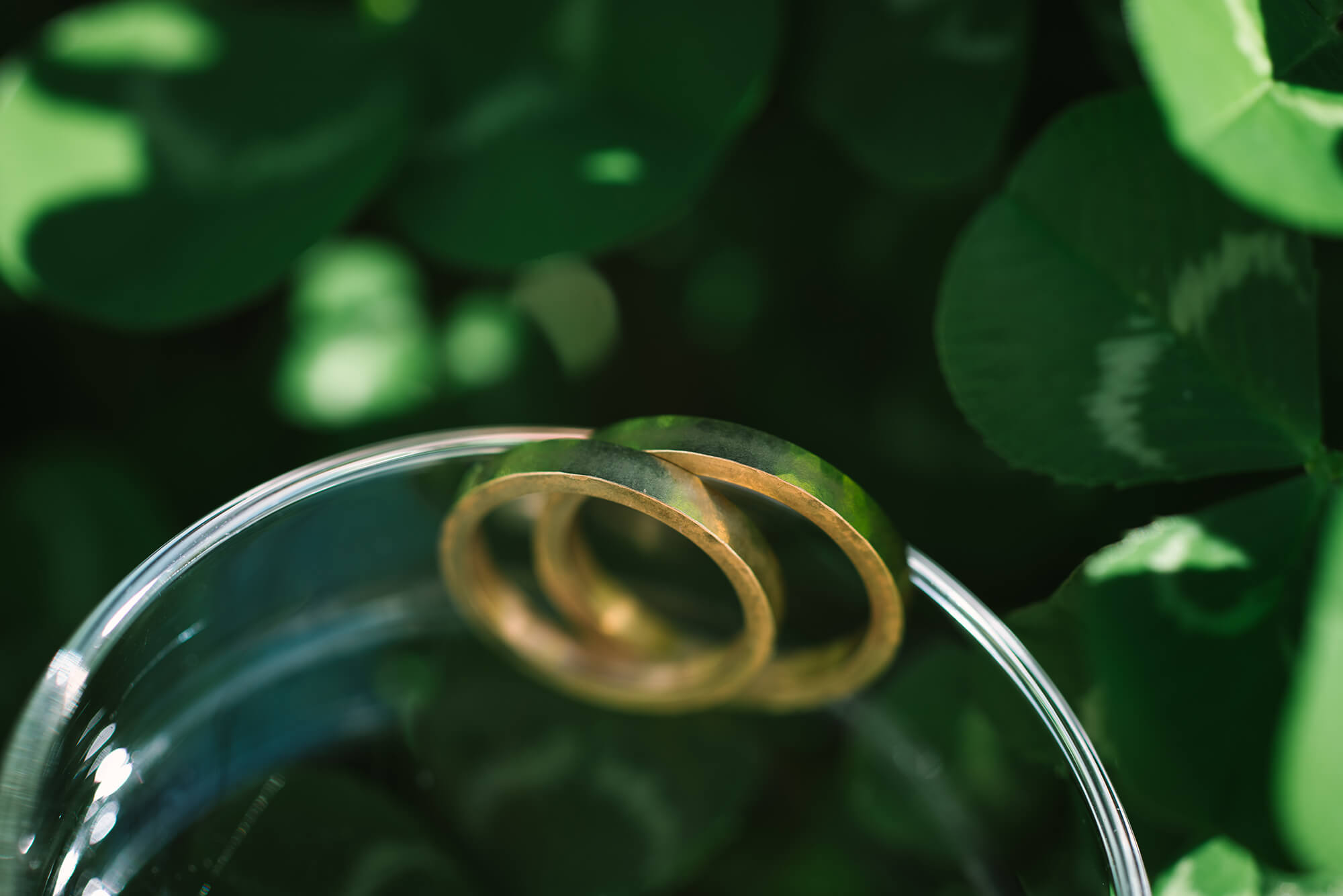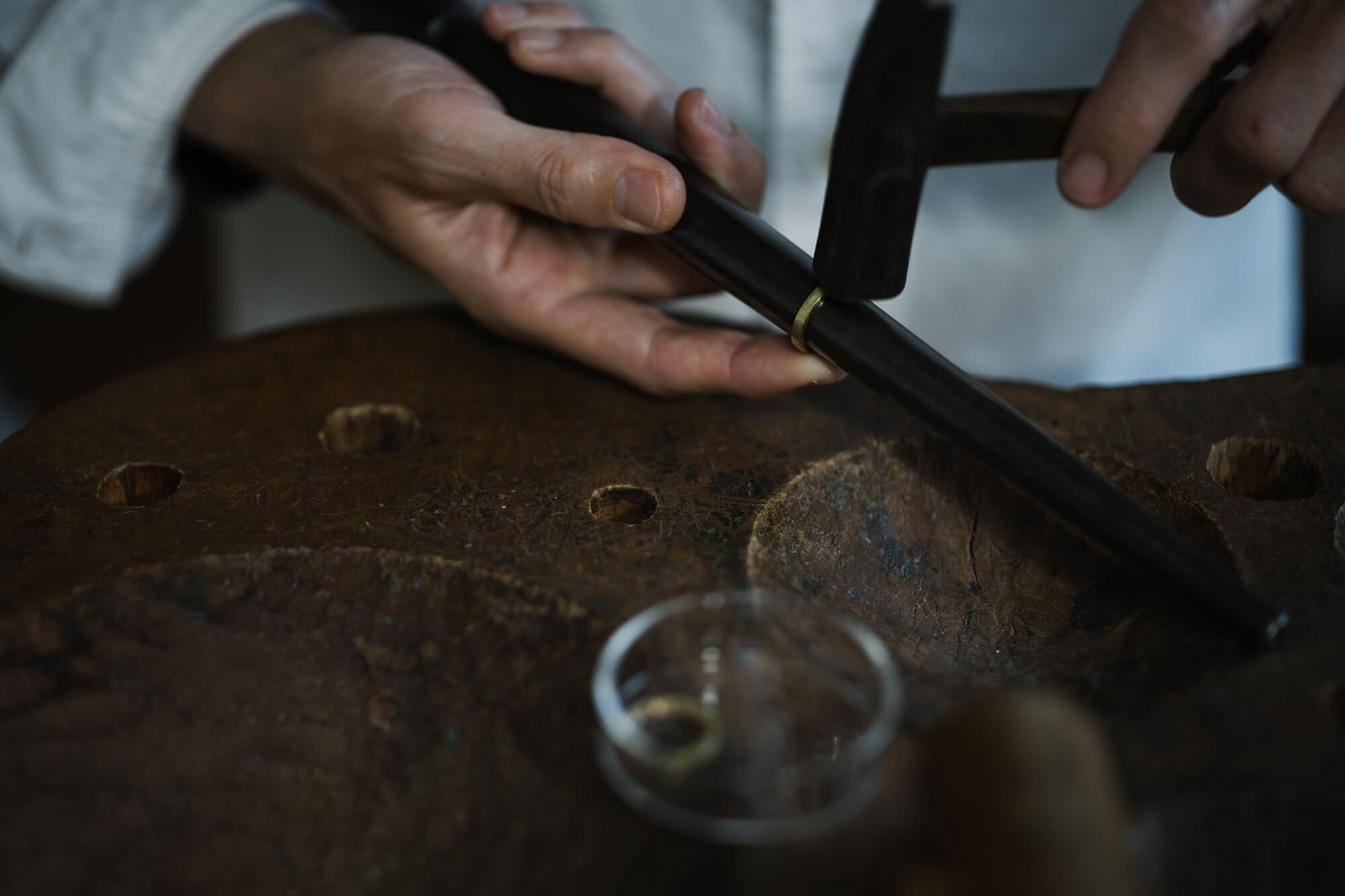 After shaping the yellow gold into rings, I applied pressure with a steel hammer.