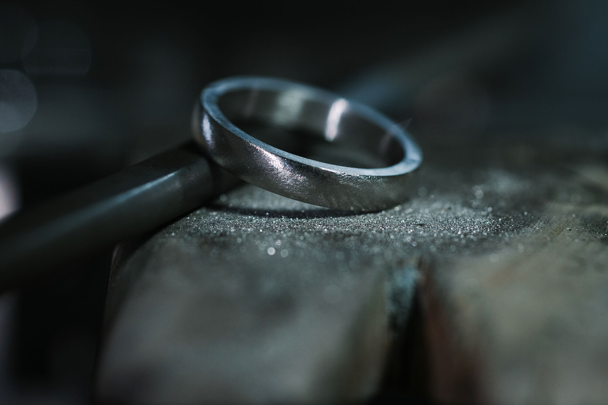 After forming the two rings into a circle, I began shaping the surface of the platinum ring with a steel file.