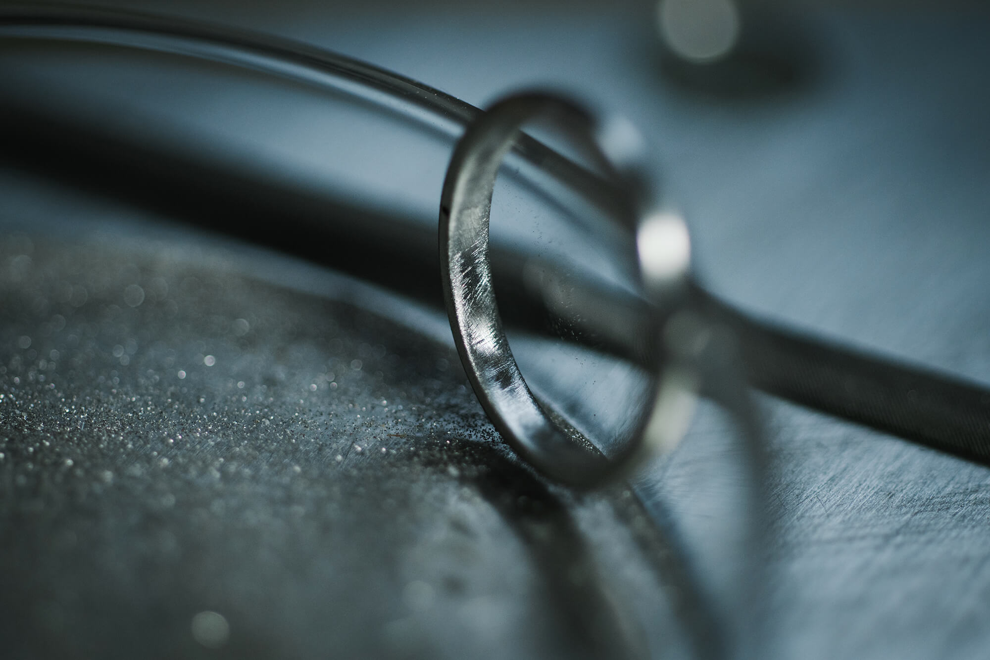 削り進めるごとに、作業台にはプラチナの粉がたくさん散らばり、その集積を眺めていると、もうこんなところまでやってきたのだなあと、なんだか少し、この指輪作りが名残惜しく感じられたりもしました。