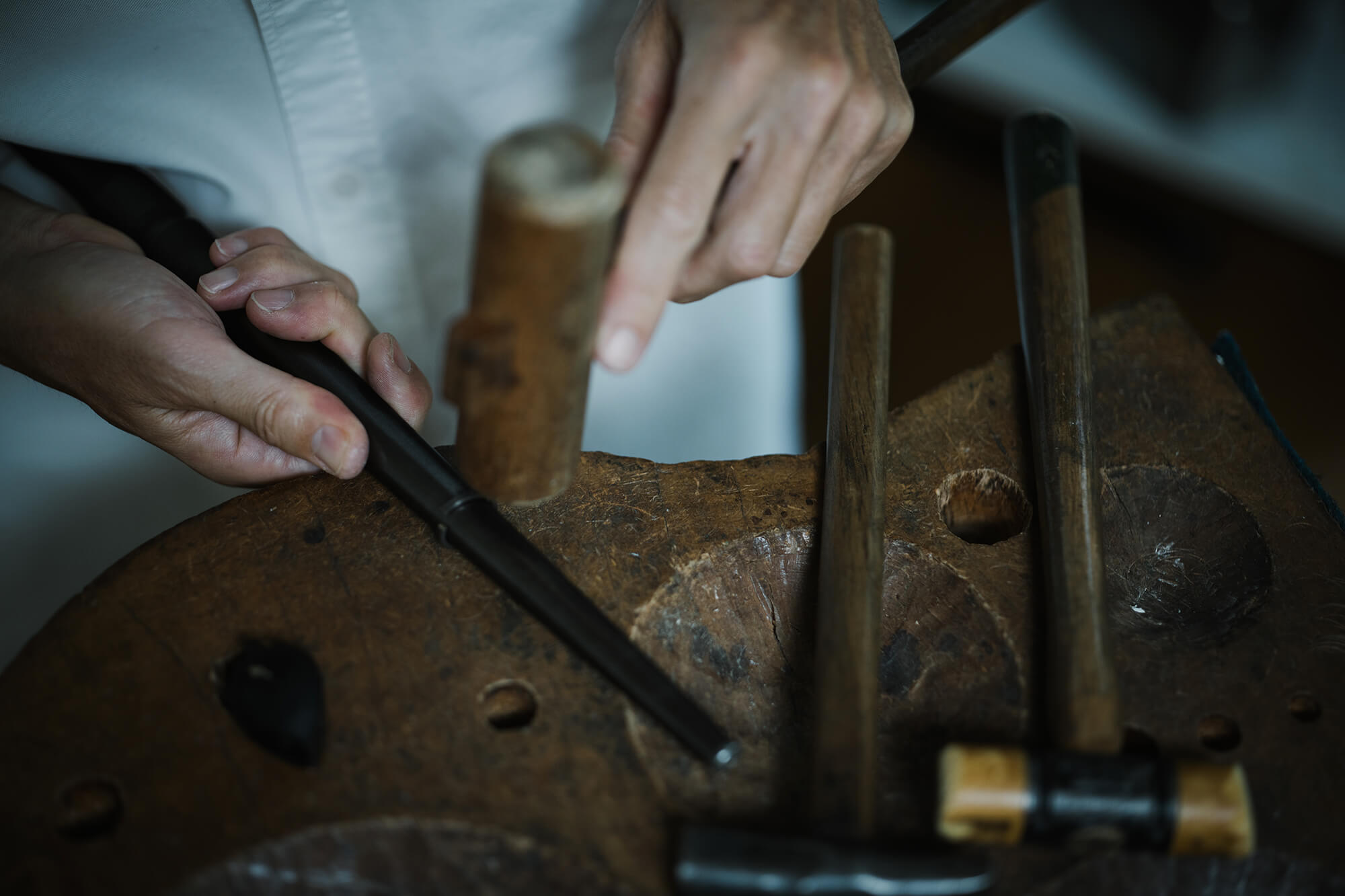 こんこんと、はるか昔から変わらない手仕事のリズムが、アトリエに響く。